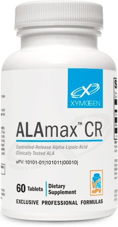 Alpha MaxCR a potent oxidative stress antagonist, is a proprietary, orally active, controlled-release formulation of racemic a-lipoic acid (containing both R and S enantiomers) that has a pharmacokinetic advantage over other alpha lipoic acid formulas. Other brands are cleared from the plasma within two-three hours; whereas, ALphaMaxCR™ remains in the plasma for four to six hours.